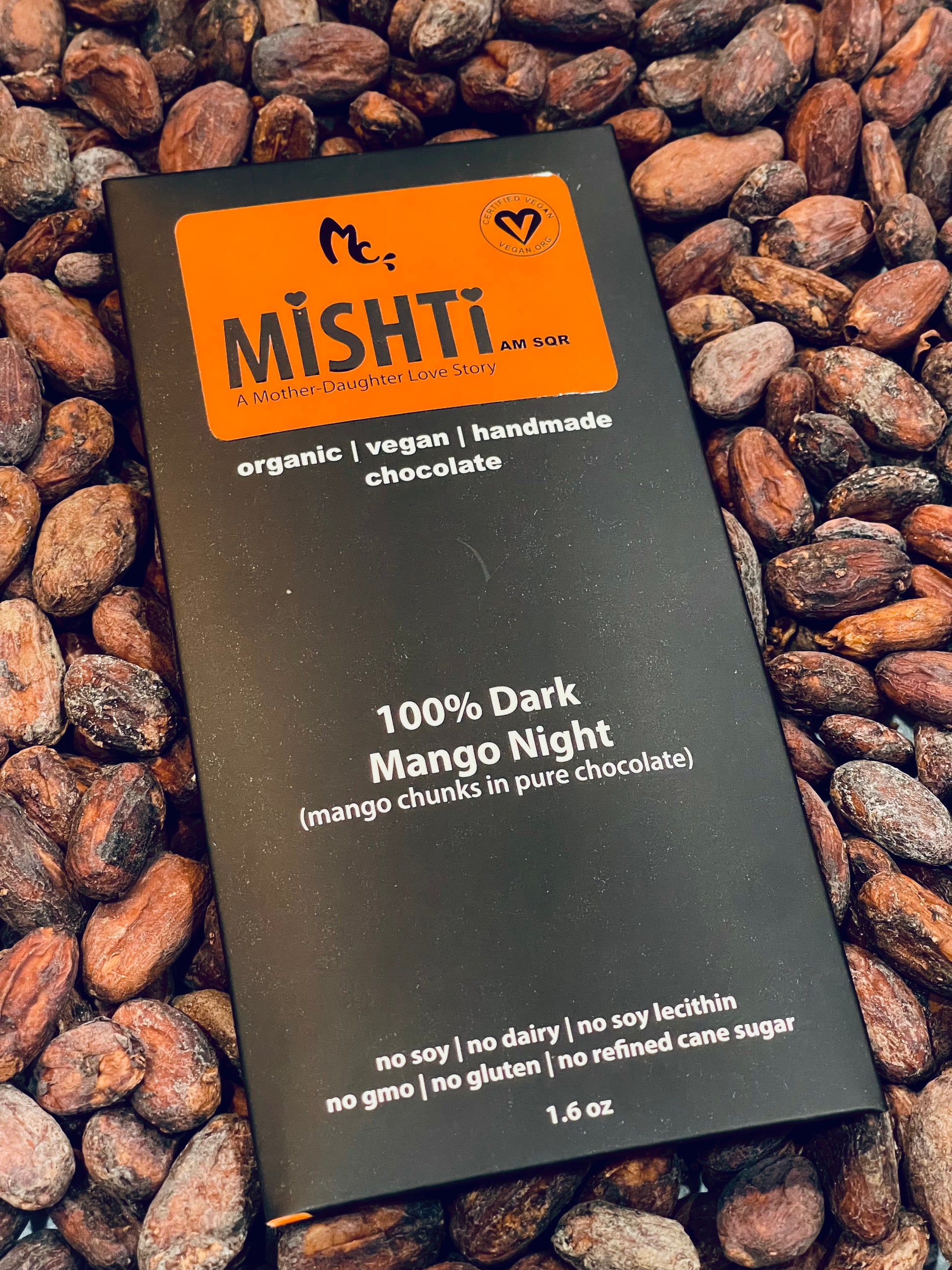Darkest Mango Night - 100% chocolate with dried mango chunks - no sweeteners