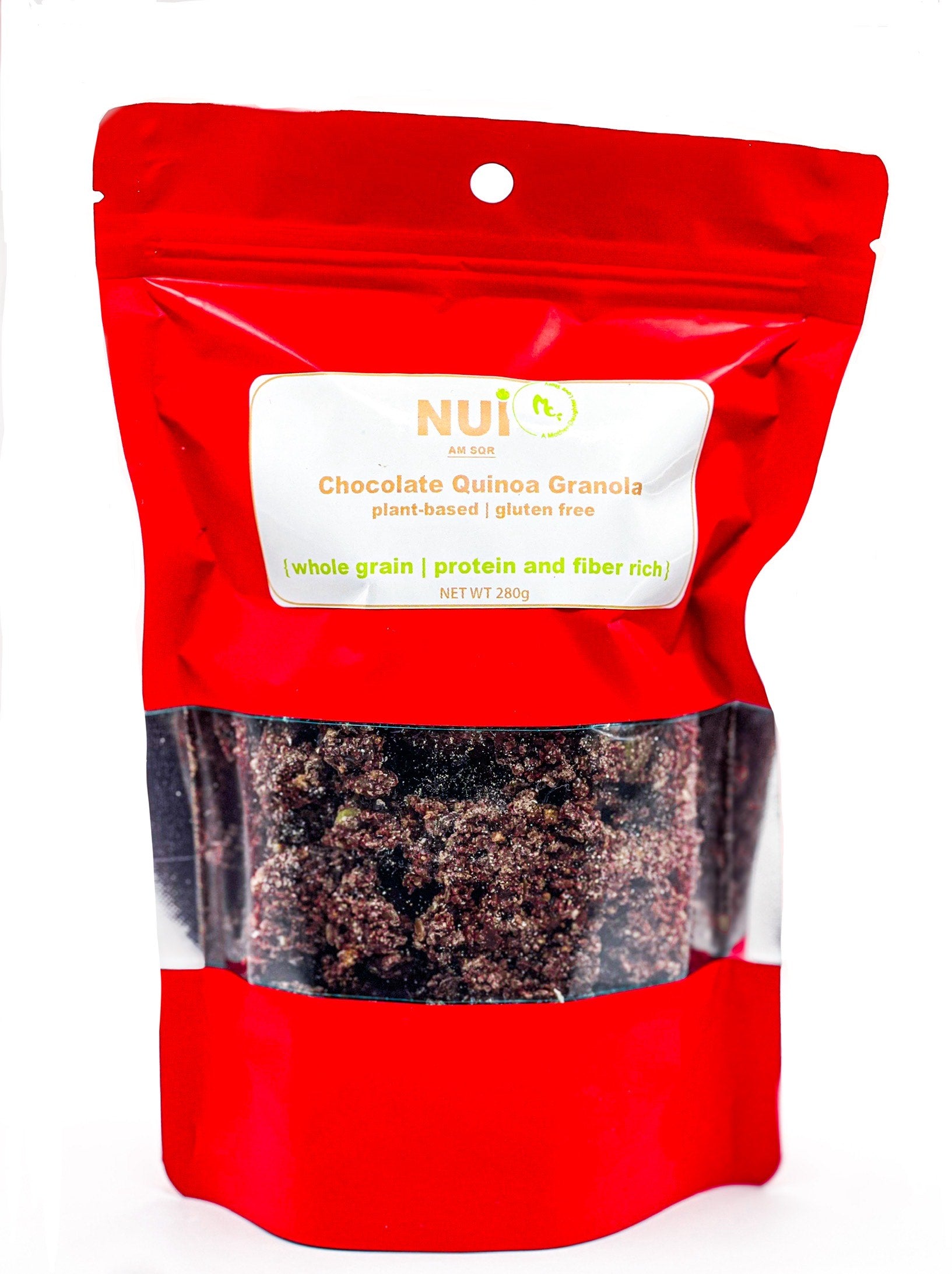 Top off your breakfast bowl, your yogurt or just eat by itself, the quinoa granola will make flavors explode in your mouth with crunch from roasted quinoa. One of the healthiest Granola made with roasted quinoa, with decadent 70% dark Mishti chocolate and health goodies like pumpkin and flax seeds and dried cherries. All organic. Free of gluten.
